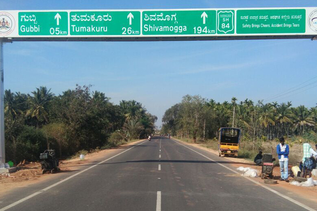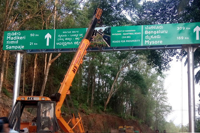 A gantry (also known as a road sign holder, road sign structure) is a traffic sign assembly in which signs are mounted or are supported on an overhead support. Gantries are usually built on high-traffic roads or routes with several lanes, where signs posted on the side of the highway would be hard for drivers to see. Gantries may be cantilevered or one sided on the left, right and center (sometimes referred to as a half-gantry or Butterfly gantry), or they may be bridges with poles on each side.
